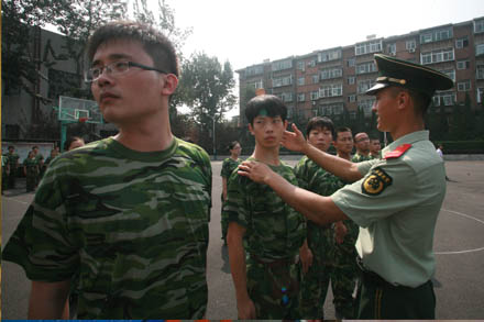 雖然已是初秋時節,但艷陽高照的操場上,依舊讓人感受到“秋老虎”的威力。學員們身著迷彩服整齊列隊,一絲不茍地在部隊教官的嚴格指導下,刻苦練習“站軍姿”、“起步,行進”等軍訓科目。看似簡單的動作,不僅是對訓練者體力的考驗,更是對意志和耐力的磨練。幾個過程下來,學員們全都汗濕了衣衫,烈日下的面頰也愈加顯現出堅毅神情。