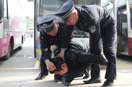 演練現場模擬車站治安科在巡邏中發現疑似爆炸物品行李箱,各崗位立即啟動防爆應急預案。防爆領導小組成員迅速按職責分工各就各位;應急疏散、設備保障、綜合服務等小組對旅客進行有序疏散;治安人員第一時間對現場進行緊急處置;售票處按實戰標準停止售票、設置警戒區,安全轉移票據票款。同時責任人員利用車站防爆桶實施險情排除,通過調取監控錄像等方式搜索嫌疑人,并及時實施抓捕,在確認疑似爆炸物及恐怖襲擊隱患排除后,解除應急狀態,恢復正常運輸秩序。