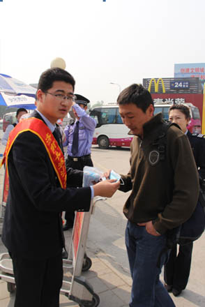 當天上午九點,“文明關愛先鋒行”吹響啟動的號角,南區團支部組織團員利用業余時間來到車站,開展了關愛旅客、服務一線的活動。團員們分成“旅客出行貼士組”、“導乘服務幫手組”和“公益知識宣講組”3個小組,深入到進出站口、候車長廊和車站周邊,為出行旅客送去行李推送、班次導乘、市內線路咨詢等服務,并為旅客開展送水服務,為旅客遞上一份清涼的問候;結合天氣升溫、旅客出行集中的近況,廣大團員還積極向旅客講解各類衛生和疾病預防常識;急救箱服務還給旅途中需要的乘客提供簡單的醫護服務,得到了旅客們的廣泛好評。