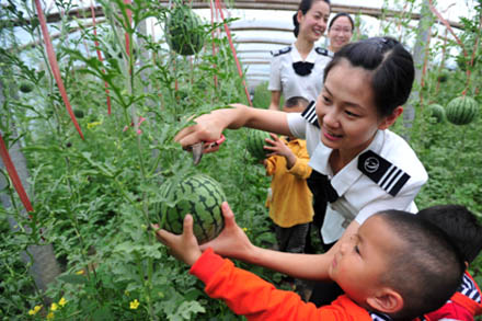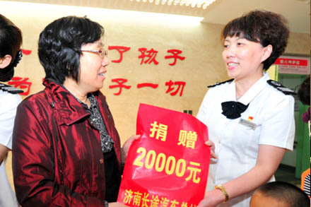 您現在的位置是:首頁 > 客運場站產業 愛心夢綿延十五載 次 客運場站產業 發布時間:2013-06-04 14:38:58 愛心夢綿延十五載 5月27日,“六一”兒童節前夕,總站的“愛心爸媽”來到濟南市兒童福利院,與福娃們歡聚一堂,促膝談心、暢敘夢想,共同慶?!傲弧眱和?,總站黨委書記韓杰代表總站為福利院送上兩萬元捐贈,院方對總站的愛心幫扶深表感謝。隨后,“愛心爸媽”帶領福娃們前往濟陽縣仁風鎮,參加西瓜采摘活動,總站愛心員工對福娃們悉心照料,與他們共享采摘的樂趣。 總站與福利院孤殘兒童結成愛心對子的愛心善舉已經堅持了整整十五個春秋,總站的“愛心爸媽”表示,他們將繼續奉獻愛心、持續關注孤殘兒童,將這份愛心在一代又一代“愛心爸媽”中,作為一項愛心事業綿綿不斷地延續下去。 (總站宣)