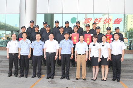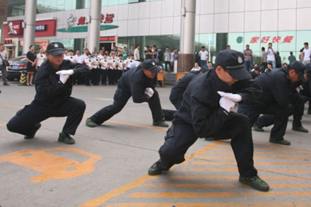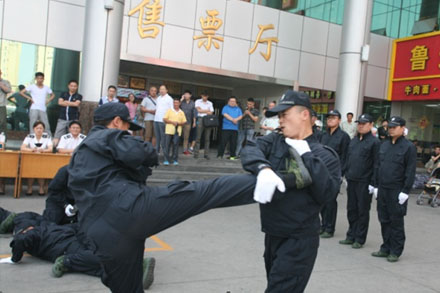 來自總站治安科的14名治安員通過“單科演練”、“對打演練”、“集體演練”三個科目,分別進行了“擒敵拳”防爆演練。期間,靈活有力的“盤腿飛踢”、“抱頭重摔”和能有效沖擊、控制恐怖分子的“貫耳沖擊”、“纏腕沖騰”等演練,博得了在場旅客的陣陣掌聲與喝彩。最終通過領導打分,共評選出一等獎1名,二等獎2名,三等獎3名,并現場進行了表彰。