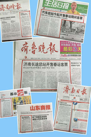 11月20日,濟南長途汽車總站全面啟動2016年春運售票系統。2016年春節為2月8日,春運自2016年1月24日開始,較之去年提前11天,且與元旦假期相隔較近,因此將出現持續時間長、客流反復等特點。為保障廣大旅客順暢出行,總站20日起,提前65天開售春運首日(2016年1月24日) 客票。