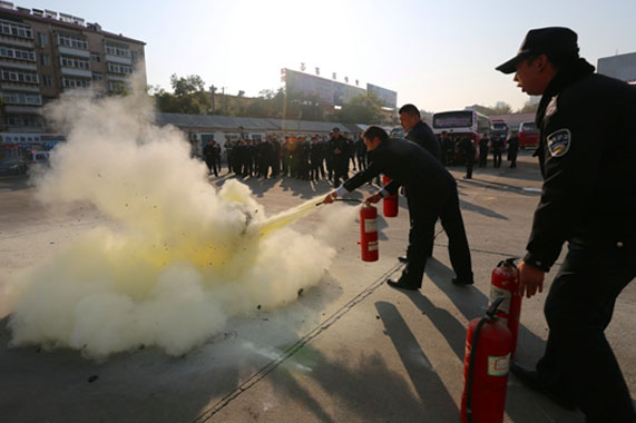 11月3日下午3點,總站南區開展了冬季安全綜合演練.首先治安科科長結合車站惡劣天氣應急預案和“11.9”消防日的活動方案進行了宣貫培訓,明確了各科室的職責分工和消防器材使用方法;隨后參加人員逐一進行了滅火操作,親身體驗用滅火器滅火的操作過程;最后,車站領導重點對各部門安全用電、站內消防、安全培訓等七方面內容進行了檢查。