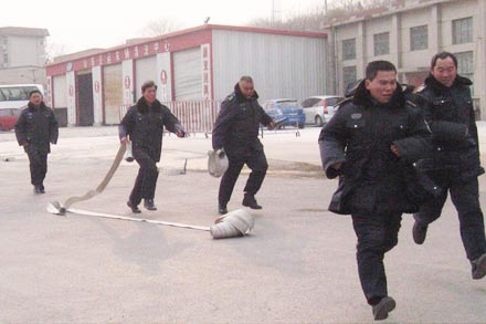演練人員首先對(duì)停車(chē)場(chǎng)的結(jié)構(gòu)特點(diǎn)、車(chē)輛布局、消防設(shè)施、消防水源、疏散通道等情況進(jìn)行全面了解,對(duì)容易誘發(fā)汽車(chē)火災(zāi)的幾種隱患因素結(jié)合實(shí)際進(jìn)行了著重分析探討,針對(duì)性地提出解決措施;對(duì)消防栓滅火操作進(jìn)行了甩帶、對(duì)接、救火練習(xí)。